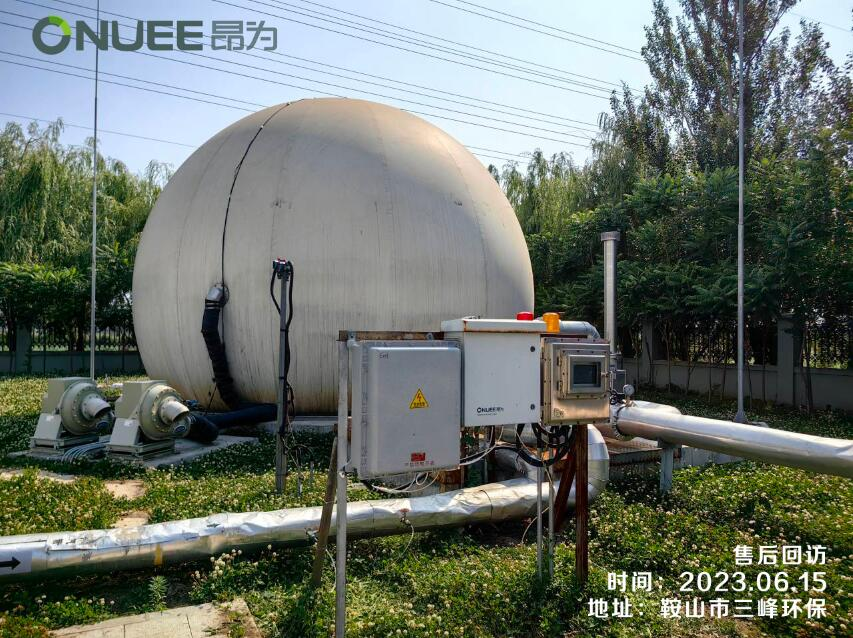 2023.06.15在鞍山市三峰環保項目現場,深圳昂為電子技術工程師正在對在線沼氣分析儀UE50進行校準和保養工作。